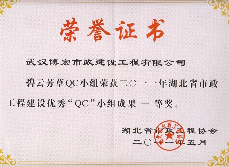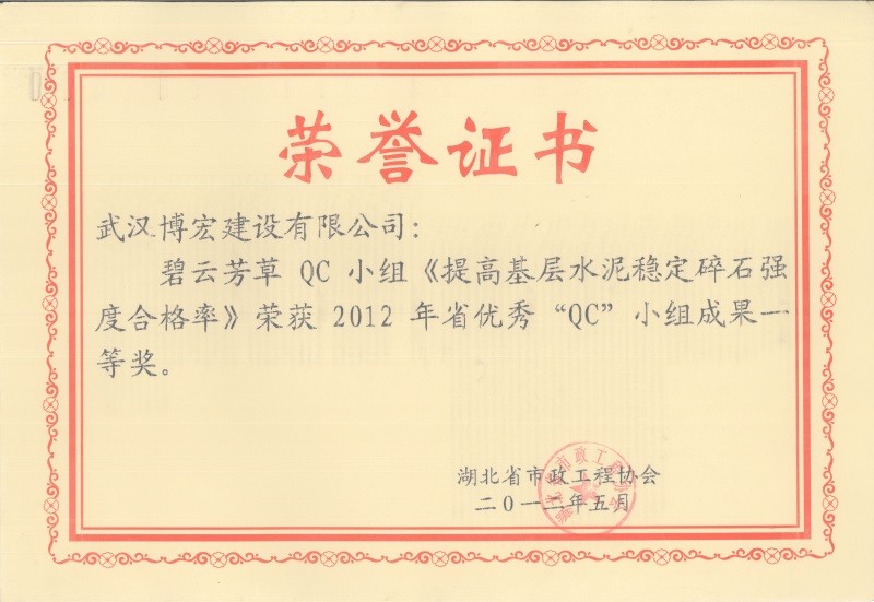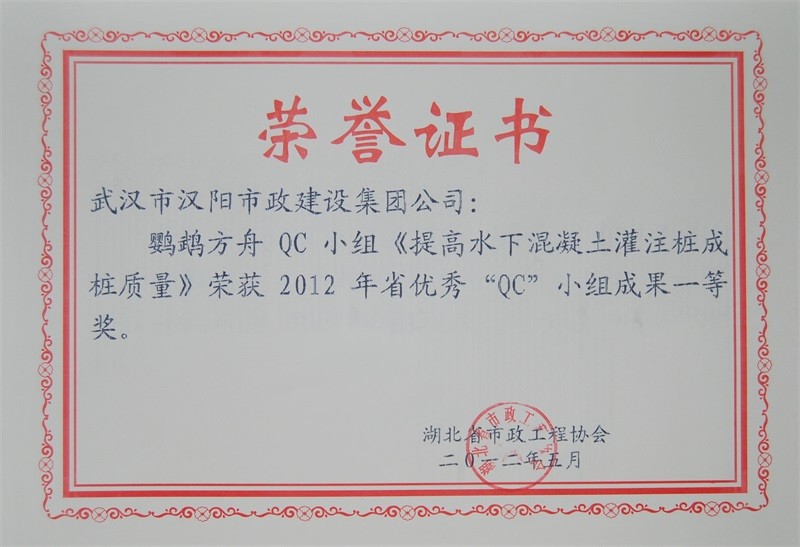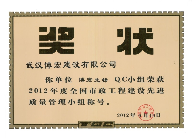 2012年度全國市政工程建設(shè)先進(jìn)質(zhì)量管理小組