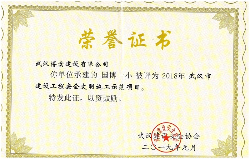 武漢市建設(shè)工程安全文明施工示范項(xiàng)目(國(guó)博一?。?/span>