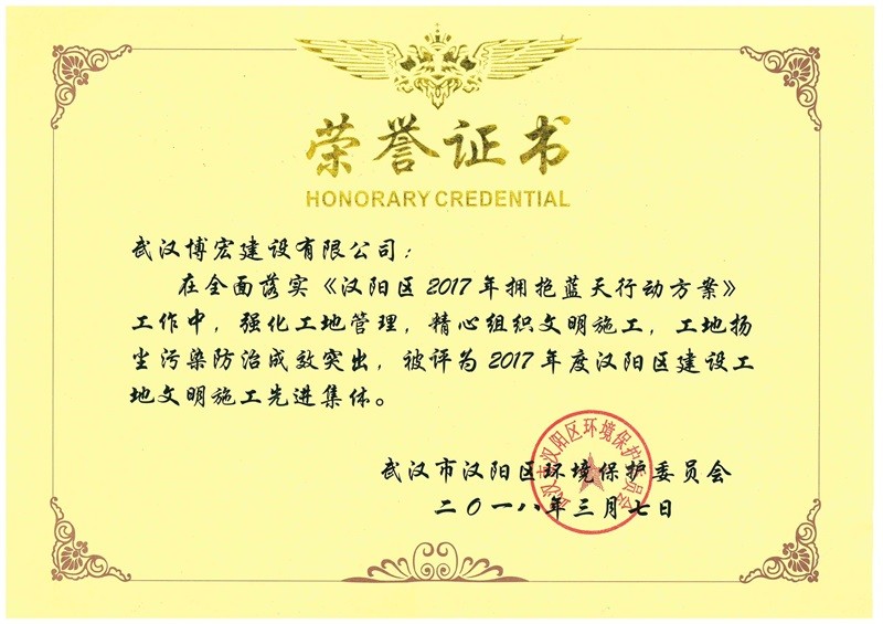 2017年度漢陽區(qū)建設工地文明施工先進集體
