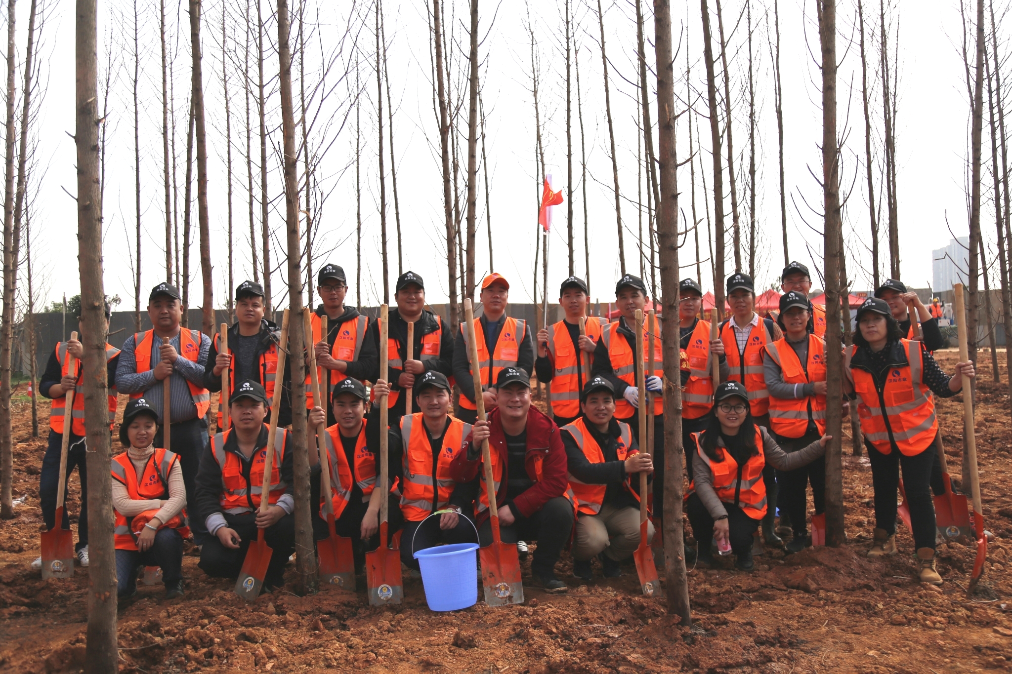 植樹現(xiàn)場(chǎng),大部隊(duì)分成八個(gè)小組“齊上陣”,大家默契配合,你扶樹,我培土,他澆水,動(dòng)作嫻熟高效,伴著明媚的陽光,在歡聲笑語中,不到一個(gè)小時(shí)就先后完成了近400棵水杉種植,綠化面積達(dá)2000余平米,期間,漢陽市政副總經(jīng)理劉前進(jìn)、邢榮斌、王智高;總工程師荊武等帶頭參與其中,不少職工更是帶著自己的孩子一同參與,共同用雙手為春天增添一份生機(jī)。