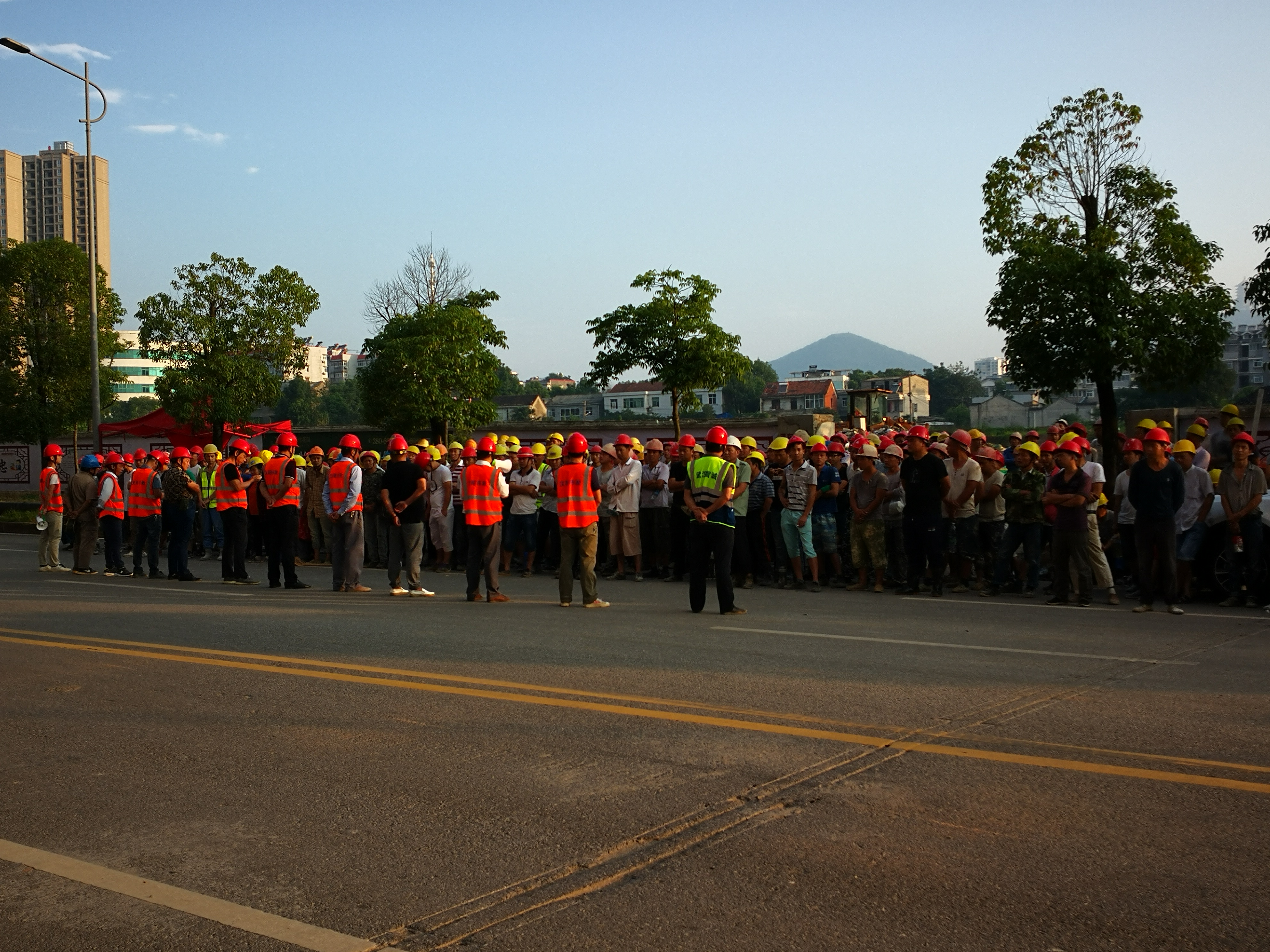 早上6點,朝陽將升未升,全體項目人員便準(zhǔn)時出現(xiàn)在項目現(xiàn)場,精神抖擻的加入到安全大喊話活動中來。現(xiàn)場管理人員首先向項目人員工講述了安全生產(chǎn)的重要性,一再提醒項目人員在施工過程中要做到多看、多留意、多謹(jǐn)慎、不冒險,寧可十防九空,不可一次放松;接著,現(xiàn)場管理人員詢問了部分項目人員安全生產(chǎn)相關(guān)常識,并詳細(xì)講述了現(xiàn)場施工過程中常見的風(fēng)險源,如電線磨損、安全帶磨損、高空物體墜落等。鑒于目前項目部大范圍使用吊籃施工,管理人員特別強調(diào)了在吊籃施工過程中,高處施工人員如何安全施工和地下施工人員如何安全通過吊籃作業(yè)區(qū)等問題。通過全面、詳細(xì)、生動的的安全常識講解和安全警示教育,項目人員不僅在安全意識方面得到提升,現(xiàn)場作業(yè)的熱情也隨著初升的陽光和充滿斗志的“安全大喊話”變得高漲,活動結(jié)束后,大家興致勃勃回到自己的工作崗位開始一天的勞動。