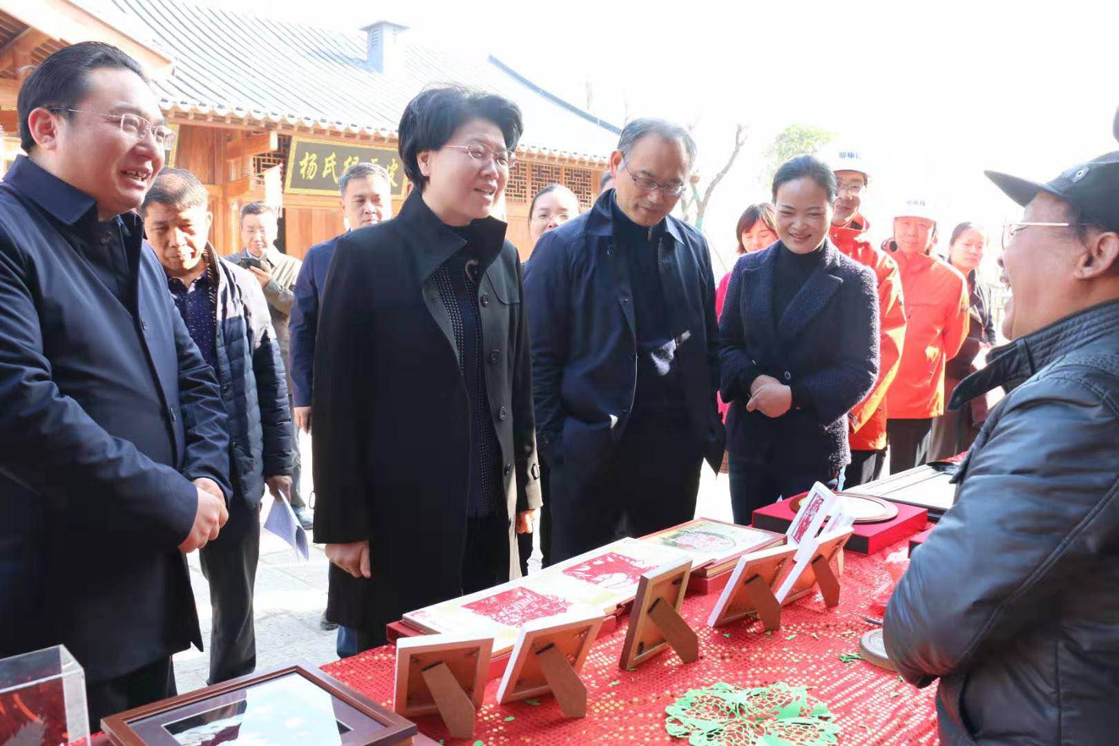 肖菊華一行走進(jìn)項(xiàng)目現(xiàn)場,在項(xiàng)目負(fù)責(zé)人的陪同和講解下,參觀了沔陽小鎮(zhèn)迎客廳、商業(yè)街、云野夢田服務(wù)中心及樣板間等區(qū)域,并觀賞了沔陽傳統(tǒng)花鼓戲《站花墻》選段,欣賞了沔陽非物質(zhì)文化遺產(chǎn)代表作雕花剪紙、沔陽貝雕、麥稈畫等。肖菊華在考察項(xiàng)目建設(shè)情況的過程中,親切地同文化傳承老藝人進(jìn)行了交流,一方面肯定了老藝人們對沔陽文化的堅(jiān)守,另一方面對項(xiàng)目整體設(shè)計(jì)和構(gòu)造所呈現(xiàn)出來的獨(dú)特文化展示平臺表示了認(rèn)可。