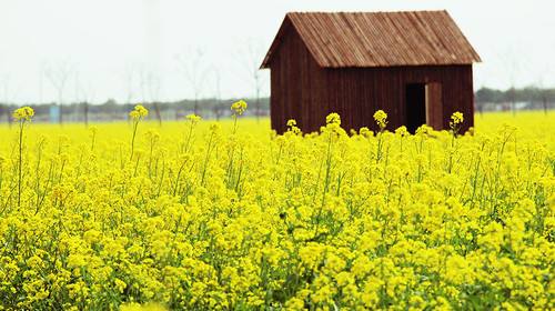 陽(yáng)春三月,春風(fēng)如沐。桃花紅了、柳葉綠了,長(zhǎng)江的水也暖和了。露水吻濕了片片綠葉,整個(gè)江城散發(fā)出如酒似蜜的清香。田里金黃的油菜花,成了蝴蝶的天地,美麗的蝴蝶在金黃色的舞臺(tái)上跳著柔和而優(yōu)美的舞姿,偶爾一陣微風(fēng)吹來(lái),油菜花立刻涌起了高低起伏的“金浪花”,遠(yuǎn)遠(yuǎn)望去,令人美不勝收!——這是我記憶中的春天油菜花地。