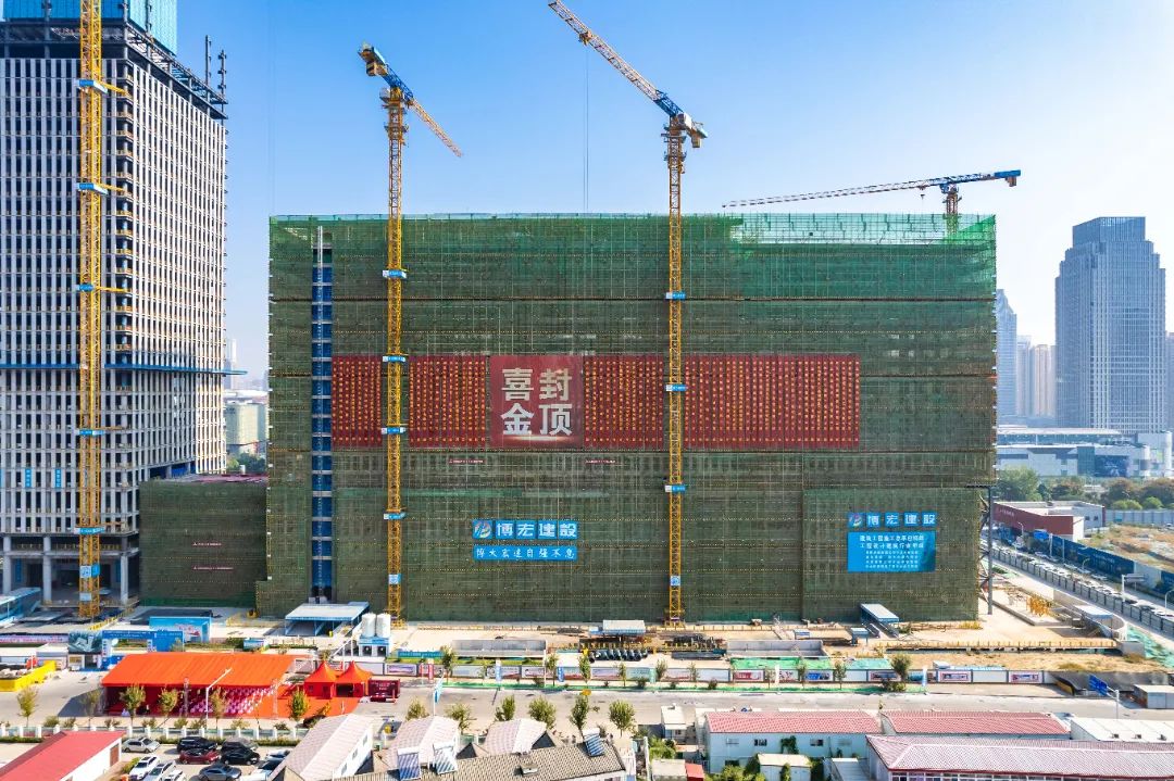 9月30日上午,由博宏建設集團承建的中南科研設計中心項目迎來副樓封頂!