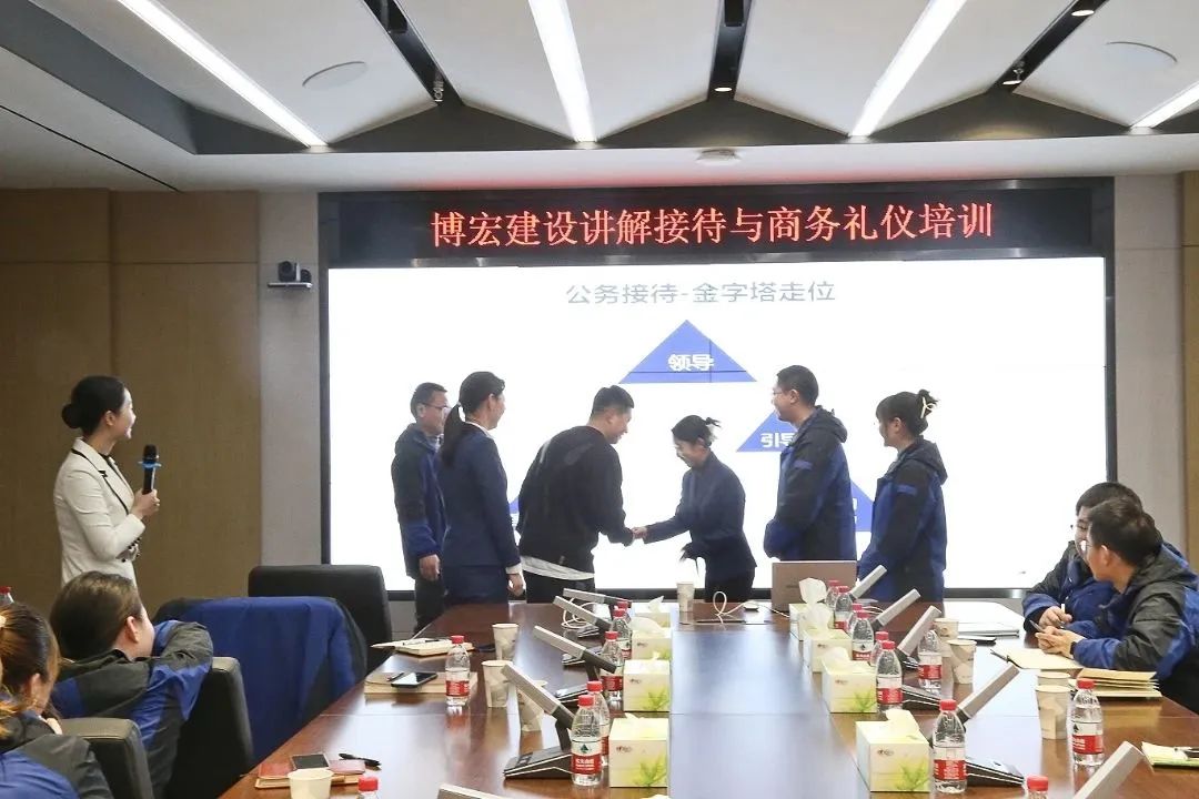 為提高公司會議及接待水平,提升員工綜合素質(zhì),塑強(qiáng)公司品牌形象。2月9日下午,博宏建設(shè)集團(tuán)在會議室組織開展了以“接待與商務(wù)禮儀”為主題的專題培訓(xùn),公司特邀知創(chuàng)禮學(xué)院首席培訓(xùn)導(dǎo)師、項目策劃師安娜老師授課。