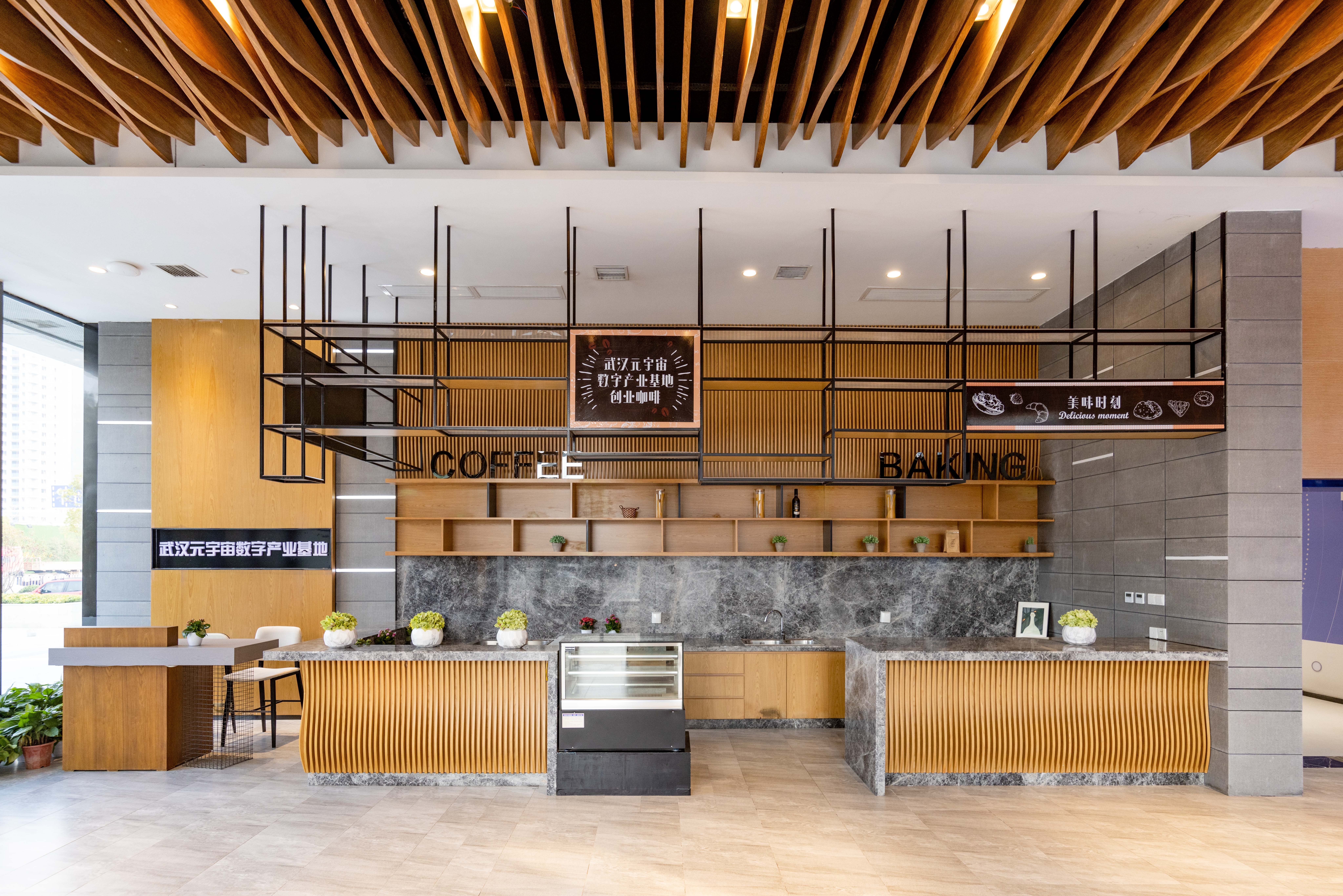 利用不同顏色不同紋理的木紋磚將辦公區(qū)域與休閑區(qū)域進(jìn)行分割。這樣各功能性分區(qū)都有固定的主要功能,也可安置各自的特色家具。整個空間采用了親和、天然性的裝飾材料,顏色的碰撞、元宇宙元素的融合,創(chuàng)造了具有未來感、幸福感的空間氛圍。