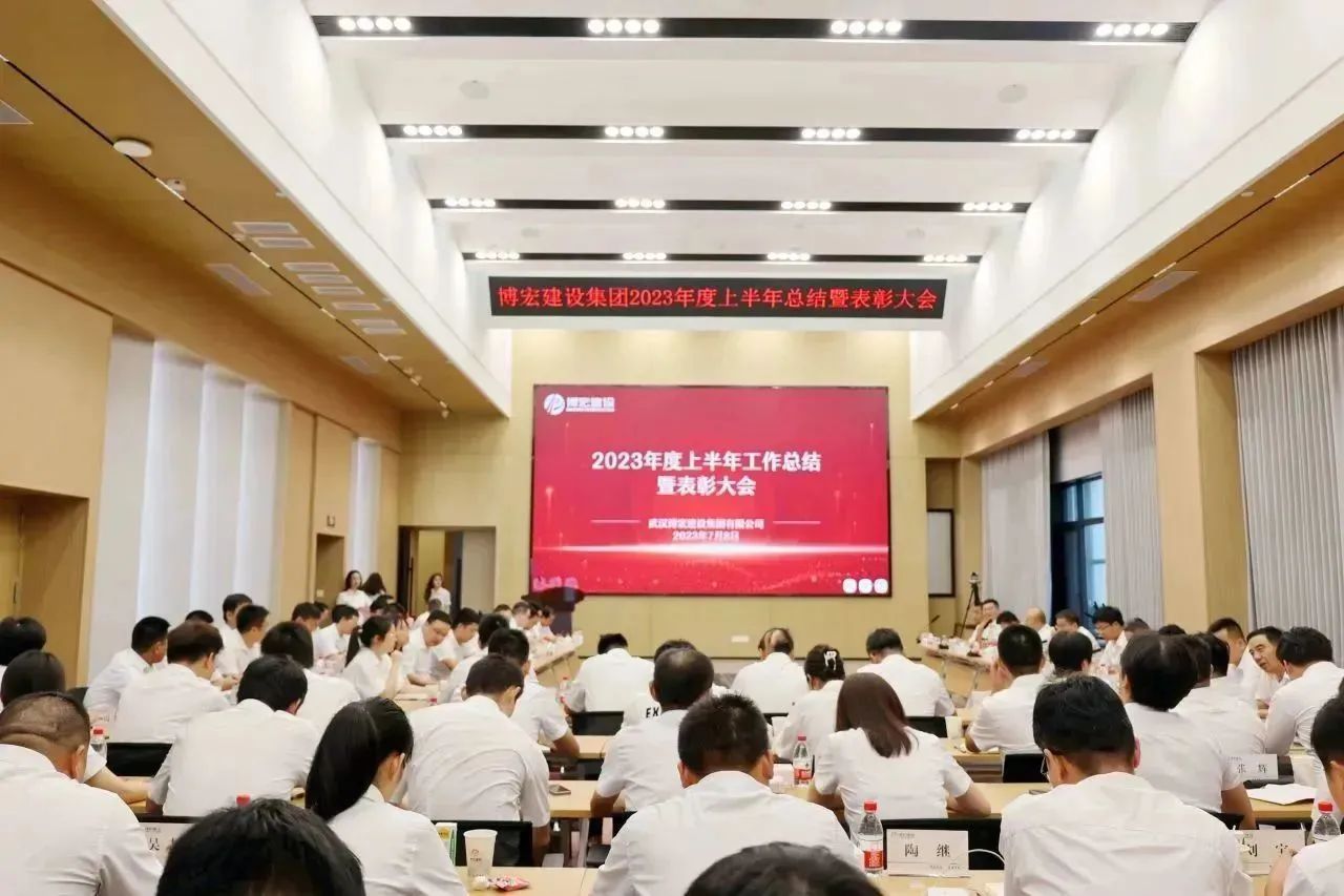 致敬來時路,奮斗正當時。7月8日上午8:30,博宏建設集團2023年上半年工作總結(jié)暨表彰大會在公司31樓大會議室如期舉行,公司黨委班子、技術顧問、職能部門部長、項目經(jīng)理及業(yè)務骨干代表等,共計84人參加會議。
