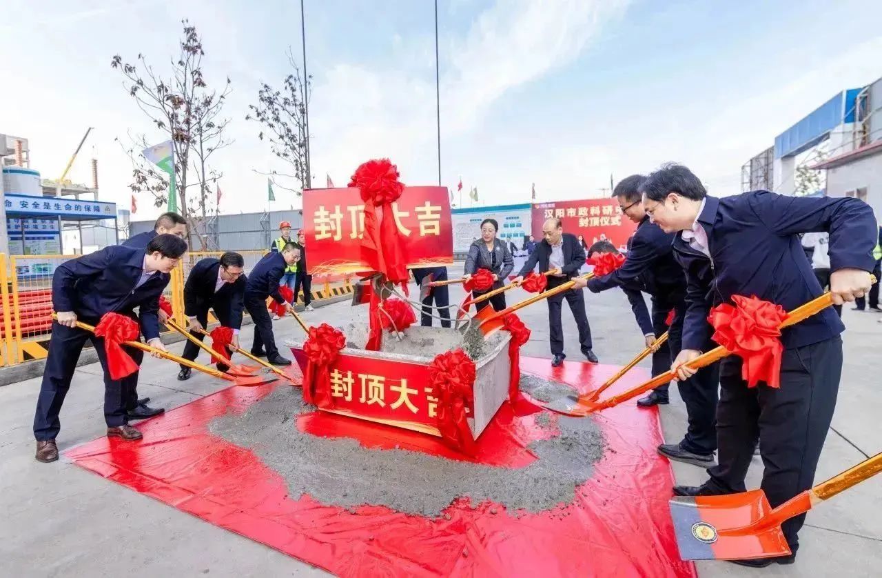 2023年11月8日上午,漢陽(yáng)市政科研中心封頂儀式在項(xiàng)目現(xiàn)場(chǎng)隆重舉行。漢陽(yáng)區(qū)國(guó)資局黨組書記、局長(zhǎng)嚴(yán)俊,漢陽(yáng)區(qū)建設(shè)局黨組成員、漢陽(yáng)區(qū)建管站站長(zhǎng)王晟,漢陽(yáng)市政集團(tuán)黨委副書記、副董事長(zhǎng)虞志鵬,總工程師荊武及相關(guān)部門負(fù)責(zé)人,兄弟單位主要領(lǐng)導(dǎo),博宏建設(shè)集團(tuán)黨委書記、董事長(zhǎng)、總經(jīng)理鄒勇,常務(wù)副總經(jīng)理奚雷等相關(guān)領(lǐng)導(dǎo),以及項(xiàng)目一線建設(shè)者共計(jì)60余人共同見證項(xiàng)目封頂。