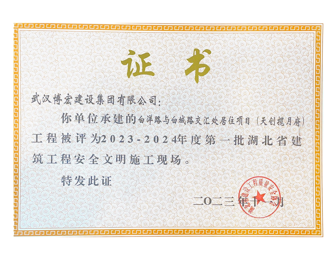 近日,湖北省建設(shè)工程質(zhì)量安全協(xié)會公布了2023-2024年度第一批湖北省建筑工程安全文明施工現(xiàn)場名單,由博宏建設(shè)集團承建的隨州市中心看守所辦公區(qū)、監(jiān)區(qū)及配電房;黃金口產(chǎn)業(yè)園商業(yè)設(shè)施、居住、公園綠地建設(shè)項目;新建工業(yè)項目(漢陽市政科研中心)(EPC)等8項工程獲評湖北省建筑工程安全文明施工現(xiàn)場。